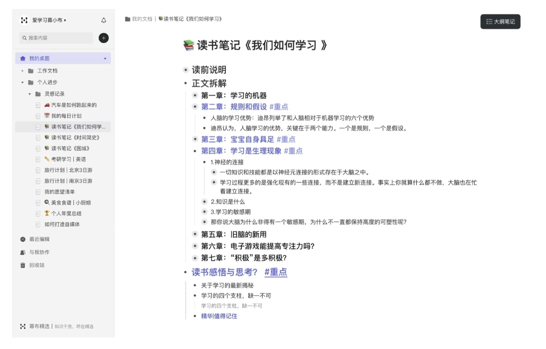幕布是一款帮你进行逻辑思考的笔记工具,能用更高效的方式和清晰的结构来记录笔记、管理任务、制定工作计划、头脑风暴。