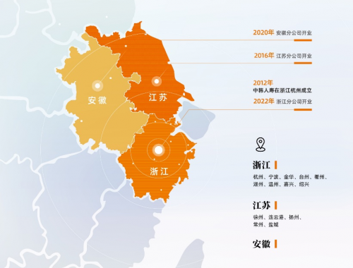 中韩人寿成立于2012年,是经中国银保监会批准成立,总部在浙江的全国性寿险公司。目前已经在浙江、江苏和安徽拥有近40家分支机构,通过股东赋能和上下游产业联动,已经构建了完整的保险生态,为客户提供普惠金融和差异化增值服务。
